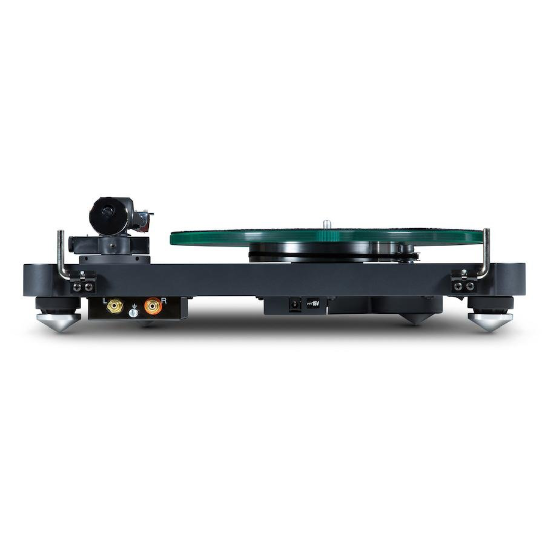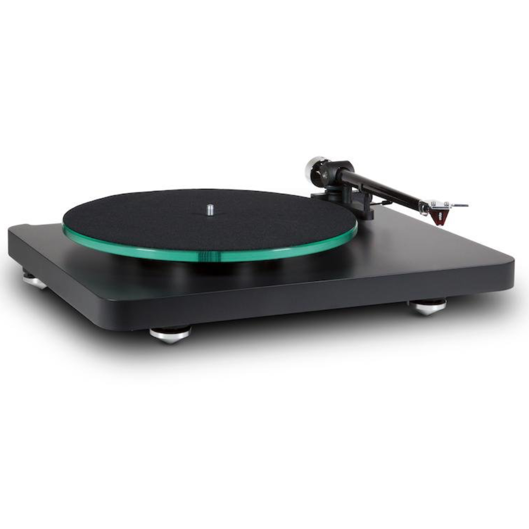 เราจึงใช้ฐานไม้แบบ MDF ขนาดใหญ่พร้อมฐานรองกันสั่นสะเทือนที่ปรับจูนมาเป็นพิเศษ พร้อมกับฝาครอบกันฝุ่นแบบหนาที่ไม่มีการเสียงสะท้อน กอปร.กับการเลือกใช้แผ่นกระจก แผ่นสักหลาด ฐานไม้ MDF และโทนอาร์มคาร์บอนไฟเบอร์ ผ่านการพินิจพิจารณาอย่างรอบคอบ เพื่อให้การทำงานร่วมกันสมบูรณืแบบ และลดการสั่นสะเทือนต่างๆที่แฝงมา