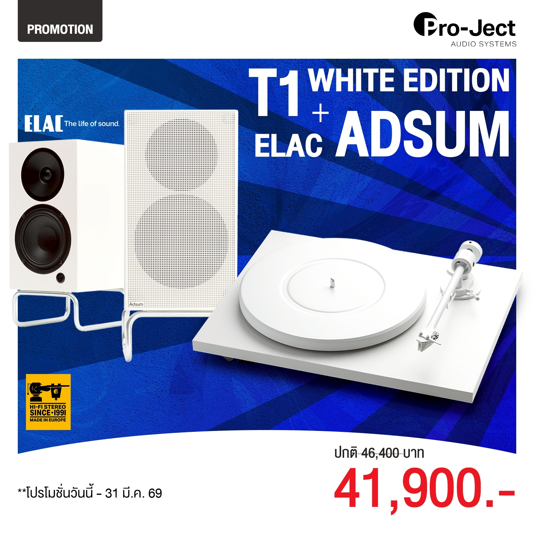 เครื่องเล่นแผ่นเสียง Pro-Ject T1 White Limited Edition + ลำโพง Elac Debut ConneX Adsum (New)