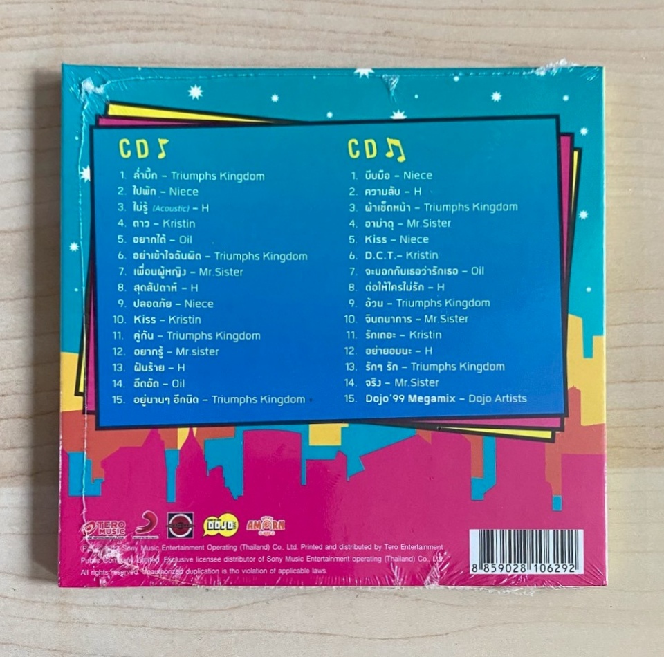 CD Back to the Dojo city อัลบั้มรวมเพลงฮิตของศิลปินค่าย DOJO City ที่เรารู้จัก และคุ้นเคยกันดี อย่าง เพลง ดาว, ไม่รู้, ผ้าเช็ดหน้า, ต่อให้ใครไม่รัก, บีบมือ, ความลับ ฯลฯ ของศิลปินที่มีบุคลิกและสไตล์ที่สะท้อนความเป็นตัวแทนของกลุ่มคน GEN Y อย่าง Triumph Kingdom, Niece, Project H, Mr.Sister, Oil Shocking Pink, Kristin บรรจุลงในซีดีแผ่นทอง 2 แผ่น