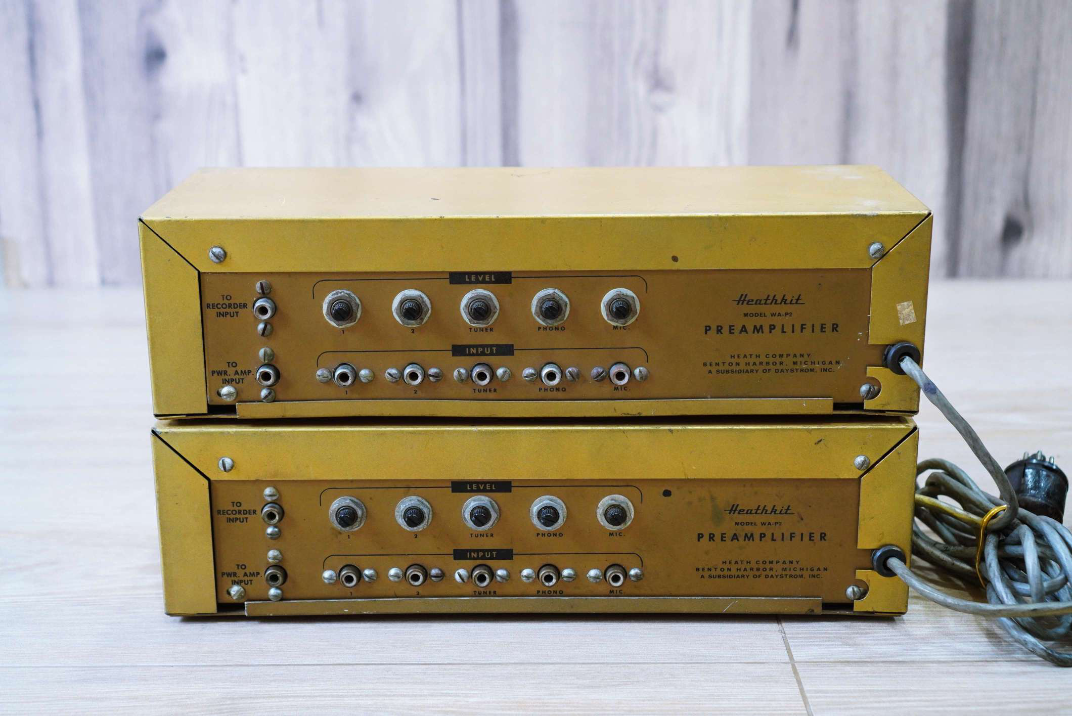 Five inputs (microphone, phono, tuner, 1, 2) with individual level controls