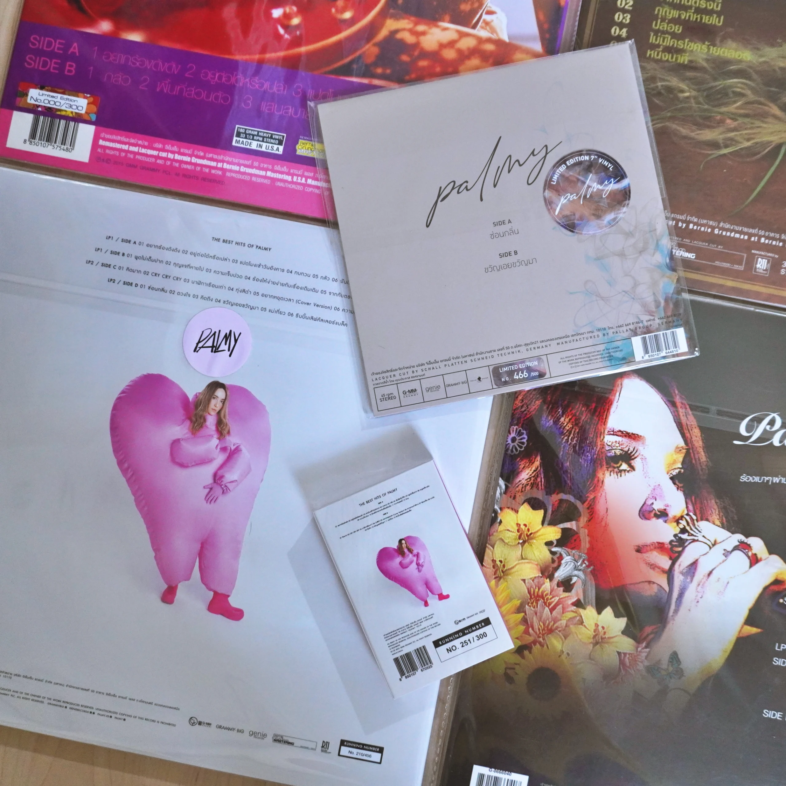 * แผ่นเสียง 6 อัลบั้ม Palmy , Beautiful Ride , Palmy5 , Palmy The Acoustic Album , The Best of Palmy และ Vinyl 7 Single ซ่อนกลิ่น-ขวัญเอยขวัญมา